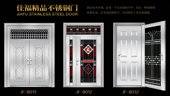 本公司成立于2004年,已有19年的生產進戶門的經驗積累。公司現擁有鋼質非標門生產線、標門生產線及不銹鋼門三條生產線,我公司專業(yè)設計、制造、銷售鋼質系列進戶門、防盜門、不銹鋼門等產品,擁有“宇佳?盈福”和“佳有福”、“家福.興隆”三個自主品牌和產品系列。公司引進了先進的生產技術,配置了成龍配套的現代化生產流水線。產品工藝成熟,質量上乘。同時,公司廣納賢才,聚集了一批具有開拓創(chuàng)新精神的各類高級管理和技術人才,建立了一套先進的管理模式。